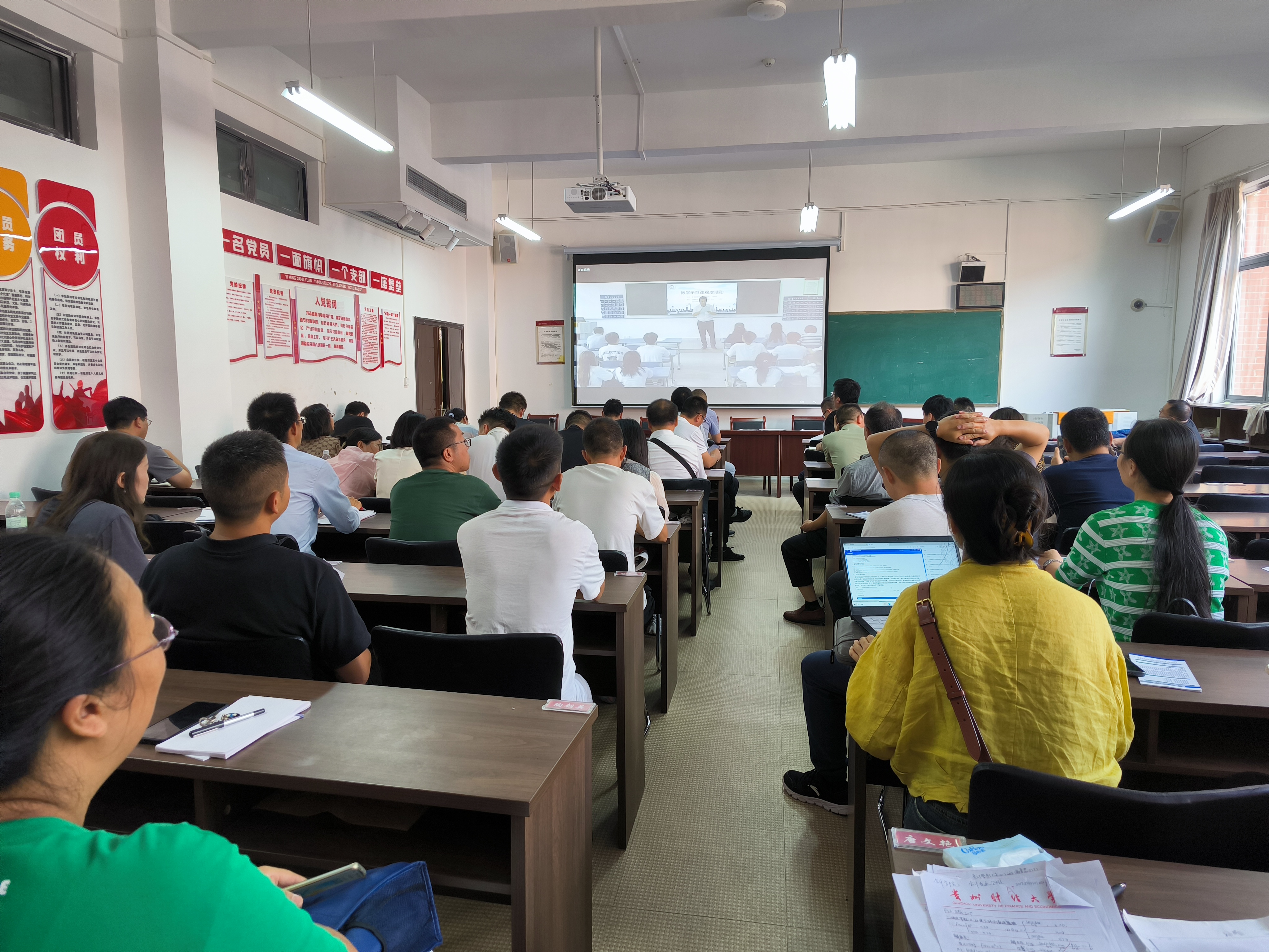 活动当日,教师们集中观摩了由管理科学与工程学院胡贤旭博士主讲的《数字地图学》课程。授课过程中,胡贤旭的教学安排条理清晰,课堂互动设计充分,展现了扎实的教学功底与丰富的教学经验,为教师提供了直观的教学参考。