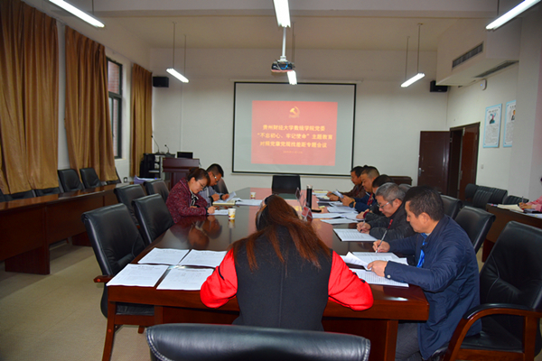 11月13日,我院 “不忘初心、牢记使命”主题教育对照党章党规找差距专题会在志学楼331会议室召开,学校主题教育第五指导组副组长张颖、成员郑武权,学院党员处级干部胡伟、焦建军、朱吉韬、李书、冯大河、陈黎明参加专题会,学院副院长余孝军及科级干部列席会议。会议由学院党委书记胡伟主持。