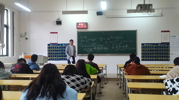 2021年12月7日,我校在勤学楼3-9教室开展数学加油站第二期活动,本次主题为“走近导数课堂·分享数学乐趣”。由我院舒亚东老师主讲,来自不同学院的60名同学报名参加。